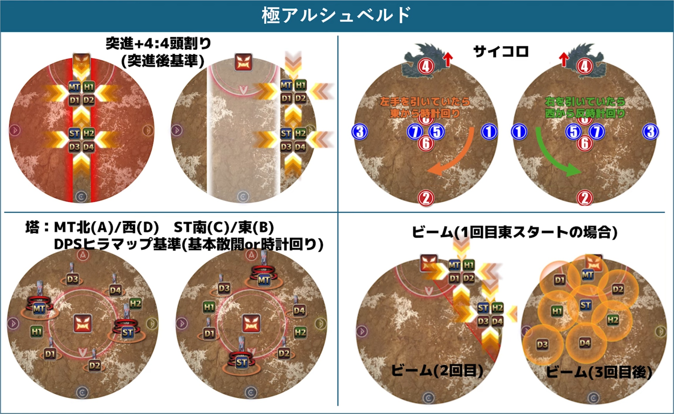 北MTH1D1D2 南STH2D3D4 ※突進前ボス見て左側に寄る