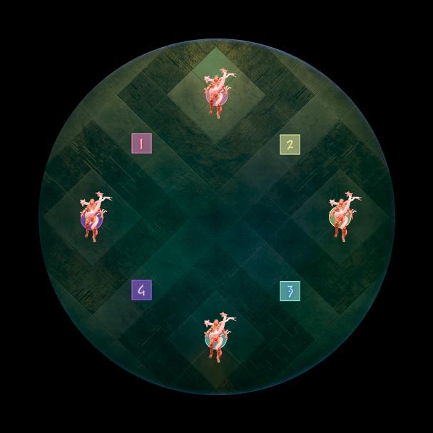 | 11. The full arena returns. We now resolve the player effects set in Step 6.