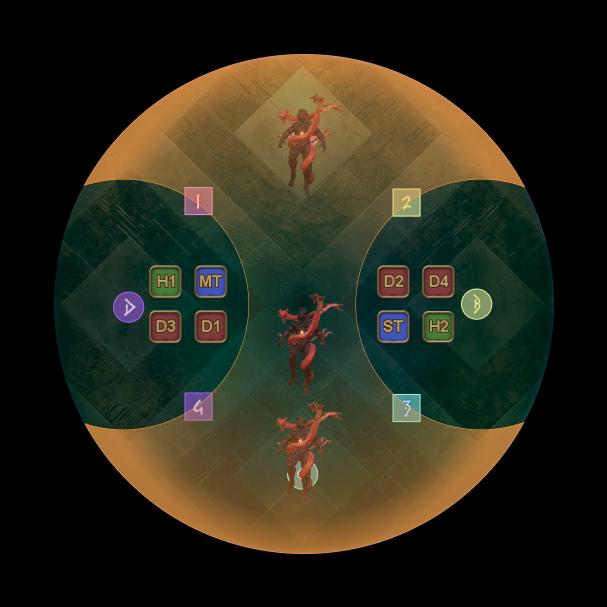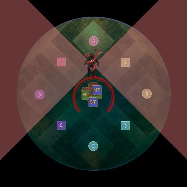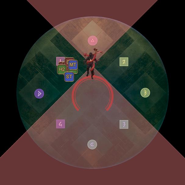 | 1. Four clones will spawn at either the cardinal, or intercardinal positions. Remember which spawned first, the cardinal or intercardinal. This will come into play in Step 16. | |