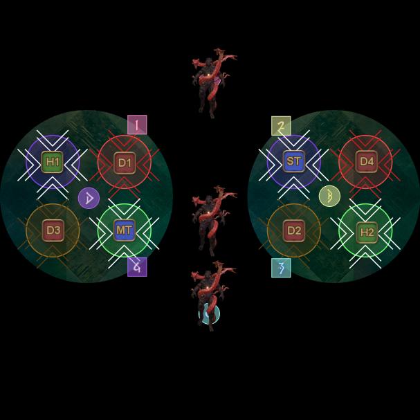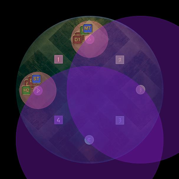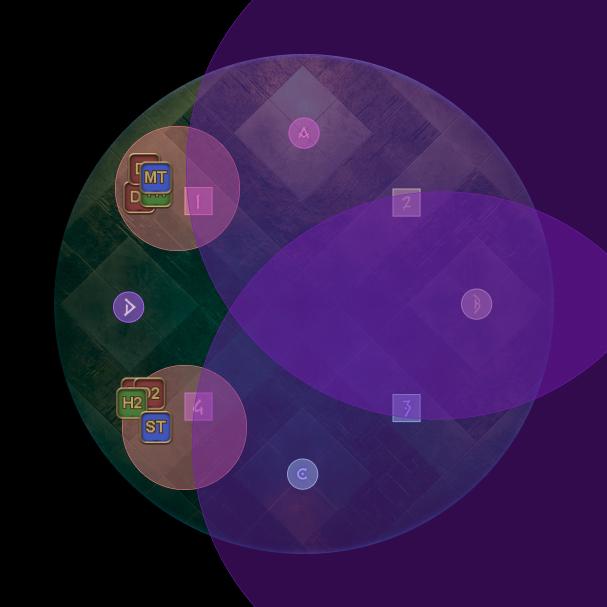 | The second swap between the South and SW players at the start technically isn't strictly necessary, as long as you remember that you want the SW clone to end with a stack, and the South clone with Defamation. However, swapping their positions in Step 3 unifies the tether swaps in Step 6- if one pair swaps tethers, then all pairs swap tethers. This makes things neater, easy to call out, and lets the SW and South players "follow everyone else" if they see everyone else doing something they're not. | |